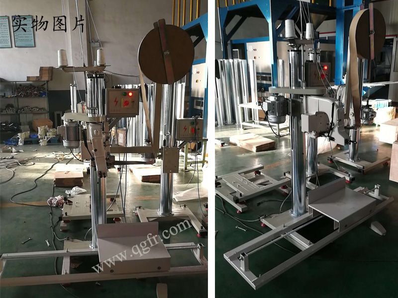 Simply operating handle can move up and down the sewing head. Provision of casters allows the machine to be moved easily. The low position of the carrier table allows easy loading and un-loading of bags. The carrier table is equipped with anti-derailing device and automatic return device.