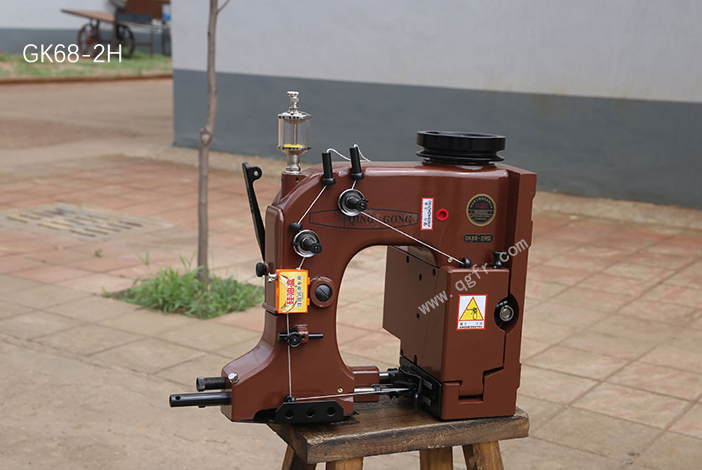 GK68-2H Extra Heavy Duty Bag Closing Machine: Single needle machine for closing of all kinds of filled bags made of extra heavy duty materials such as multi-wall paper, PP/PE woven cloth. It is suitable for film coated bags with “M” edge and bags which is fold over before sewing. The lobbing can be avoided in film coated bags sewing. Equipped with mechanically operated continuously running thread chain cutting knives, the operator has to guide the thread chain between these knives for cutting the thread chain at the end of the seam.