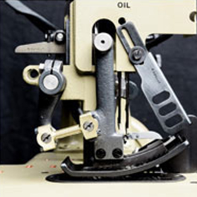 81300 Heavy duty FIBC sewing machine: Heavy duty two needle, four thread safety stitch machine  with high needle throw. With top and bottom feed for matched seams on heavy bag fabric. Needle distance 5mm, overedge seam width 19 mm, seam width overall 24 mm. With guide for filler cord from the top and / or below for sealing the needle punctures of the left needle. Electro-pneumatically operated presser foot and upper feed dog lifter. Pneumatic presser foot spring. With built-in electro-pneumatically operated hot thread chain cutter left of the needle for separating the thread chain from below.
