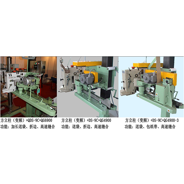 方立柱+DS-9C+QG4900-3:只送袋不折邊、高速縫合,配備包紙帶裝置后可包紙帶后縫合。