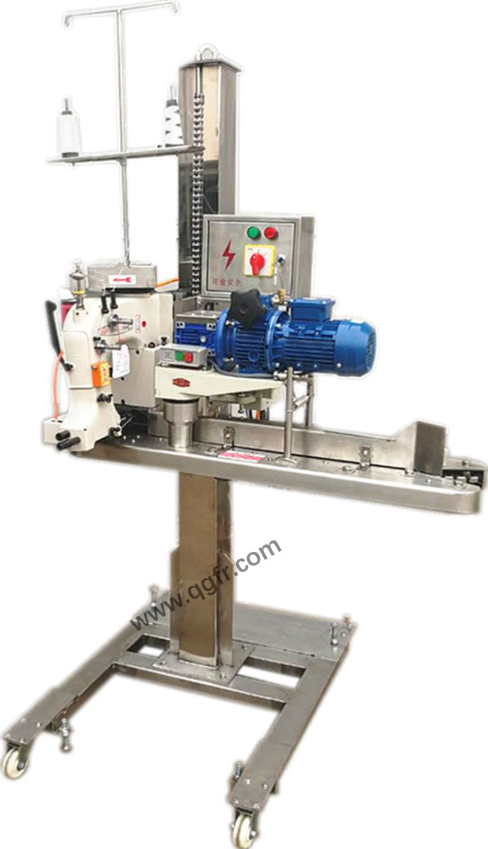 該機(jī)組由全自動(dòng)縫包機(jī)、袋子折邊機(jī)、方形支撐立柱以及相配套的電控組成,具有變頻調(diào)速功能,采用光電控制實(shí)現(xiàn)了送袋、折邊、縫口一體化,提高包裝牢度,有效的防止散包、漏包現(xiàn)象。被裝配在各種型號(hào)的輸送機(jī)上組成封包流水線,廣泛用于糧食、制糖、化工、港口等行業(yè)散裝物料的卷邊封包之用。