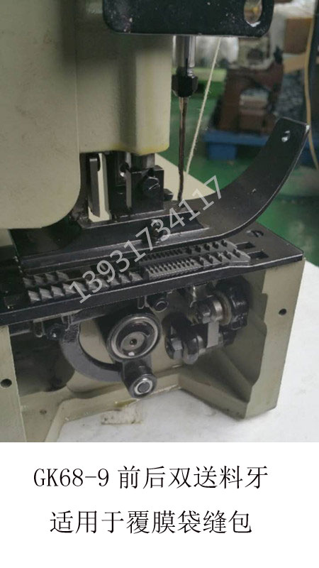 GK68-9型覆膜袋自動(dòng)縫包機(jī)集自動(dòng)開機(jī)、自動(dòng)停機(jī)、自動(dòng)剪線于一體,并且在原GK35-6A自動(dòng)縫包機(jī)的基礎(chǔ)上改進(jìn)了切刀結(jié)構(gòu),采用內(nèi)藏式可調(diào)切刀,可切斷大寬度包邊紙。切刀位置可以調(diào)整,減少了切刀磨損后的更換頻率。同時(shí)GK68-9采用雙壓腳,雙送料牙,強(qiáng)勁可靠的送料能力特別適用于編織袋雙面覆膜或者折邊等可能造成縫合過程中打滑、送料遲滯的情況。