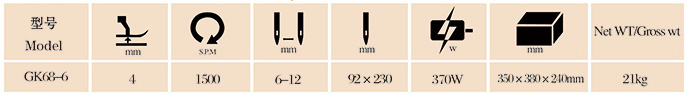 GK68-6縫口機(jī)具有半自動(dòng)潤(rùn)滑,機(jī)械式 半自動(dòng)剪線功能,并且體積小、轉(zhuǎn)數(shù)高,維修方便等特點(diǎn)。該縫口機(jī)可單雙線使用,臥式安裝可用于制袋廠,縫底、圈邊之用,立式安裝可用于化工廠、飼料廠、水泥廠及港口碼頭等盛裝粉末狀、顆粒狀物體的塑料編織袋、布袋等縫包之用。