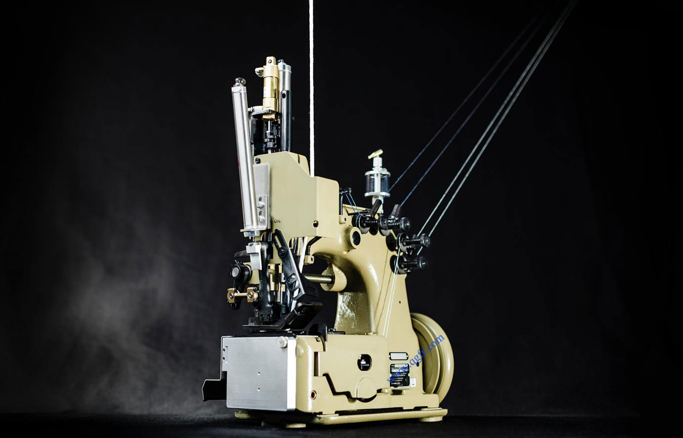 80700集裝袋雙針鏈縫機(jī),采用雙針縫合,形成鏈?zhǔn)骄€跡,上下同步送料,而且可以同時縫紉防漏條。上送料機(jī)構(gòu)設(shè)計(jì)不僅確保送料可靠,而且結(jié)構(gòu)緊湊,使得縫紉機(jī)的操作空間更大,尤其適合于集裝袋的縫制。該機(jī)除了擁有電器控制壓腳提升功能以外,還可選配電氣控制加熱式鏈線切刀。