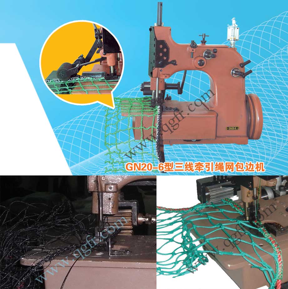 GN20-6網(wǎng)繩包邊機(jī), 是專門用于將繩索與體育用網(wǎng)、漁網(wǎng)、安全網(wǎng)、及農(nóng)業(yè)用網(wǎng)等的網(wǎng)片鏈接在一起的重型包邊機(jī)。 該機(jī)具備同步牽引功能,送料輥與機(jī)器的縫合動(dòng)作保持同步,從而確保間距、縫式的一致性以及繩索連接的可靠性,對(duì)于繩索和網(wǎng)的導(dǎo)入均提供了專門的指導(dǎo),便于操作者將繩索和網(wǎng)片連接起來,并不會(huì)出現(xiàn)跳針現(xiàn)象。單針,三線。