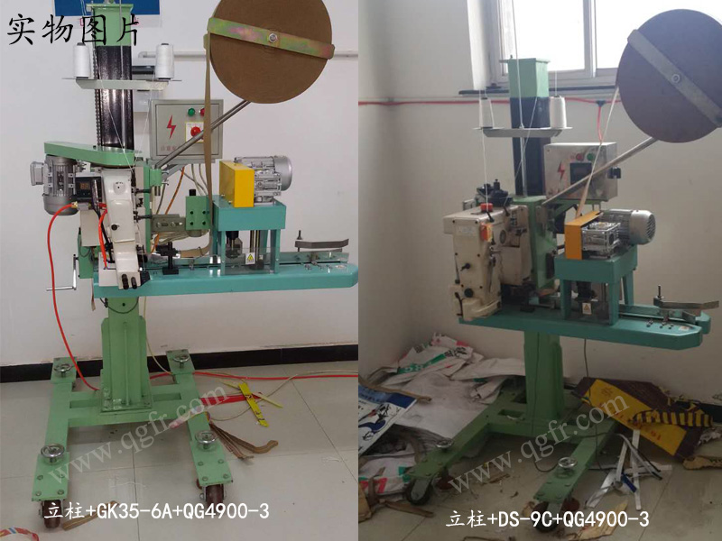 立柱+GK35-6A+QG4900-3:送袋、修剪袋口、包紙帶、縫合。適用于厚料、覆膜編織袋、紙塑復合袋。