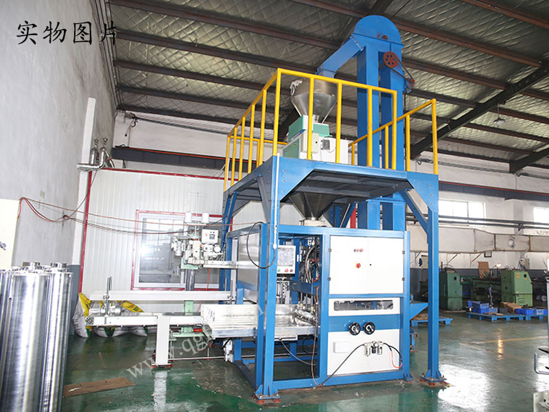 2. 裝袋機:自動裝袋機能自動連續(xù)取袋、開袋、自動檢測、自動裝袋等。電子定量秤內(nèi)放好的物料通過料斗計量后裝入料袋,并將料袋傳送到立袋輸送機上。該部機可實現(xiàn)氣爪手夾袋,真空吸盤開袋,正、負壓檢測自動棄袋等功能;